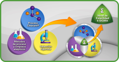 - Esterilización con radiación gamma usando el Proceso Clearant®.